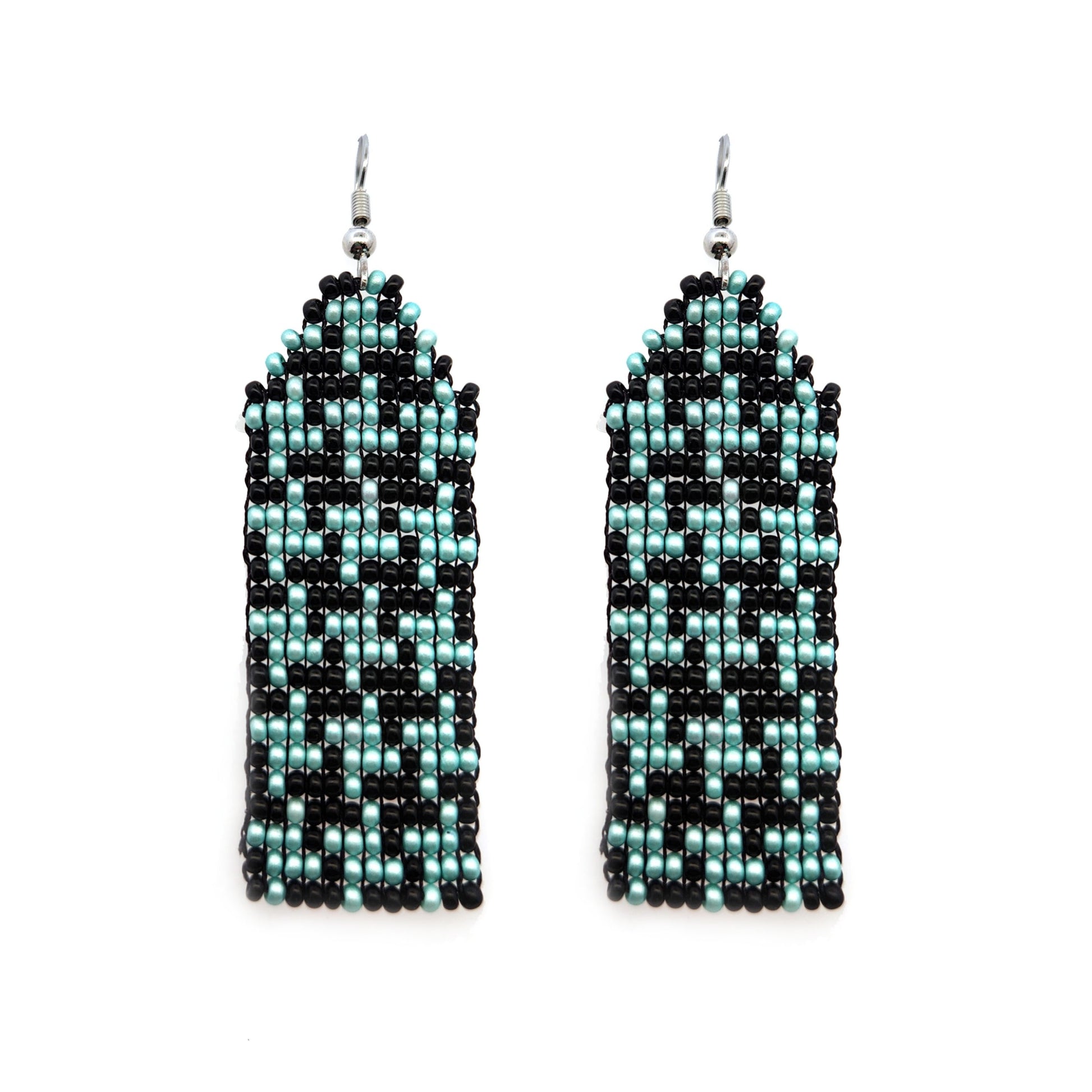 These beaded earrings feature a bold teal houndstooth pattern, bringing a modern twist to a classic design. Lightweight and stylish, they’re perfect for adding a pop of color and graphic interest to any outfit.