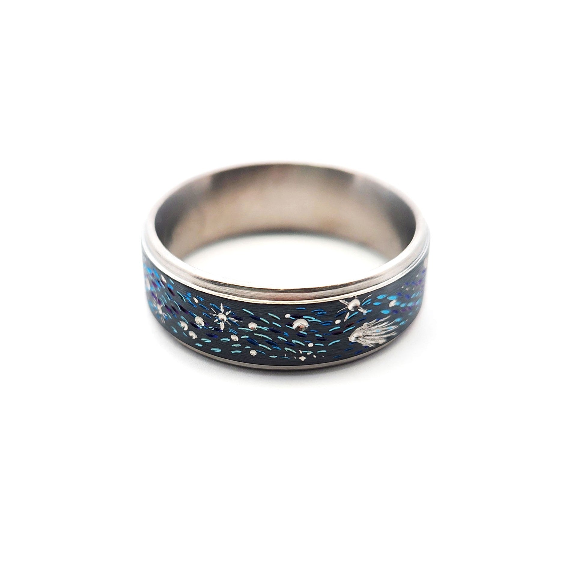 A sleek, cosmic-inspired ring crafted from matte black titanium, featuring subtle orbital textures that evoke the depth and mystery of outer space. Minimal, modern, and ultra-durable—perfect for stargazers, sci-fi lovers, and anyone drawn to celestial style.