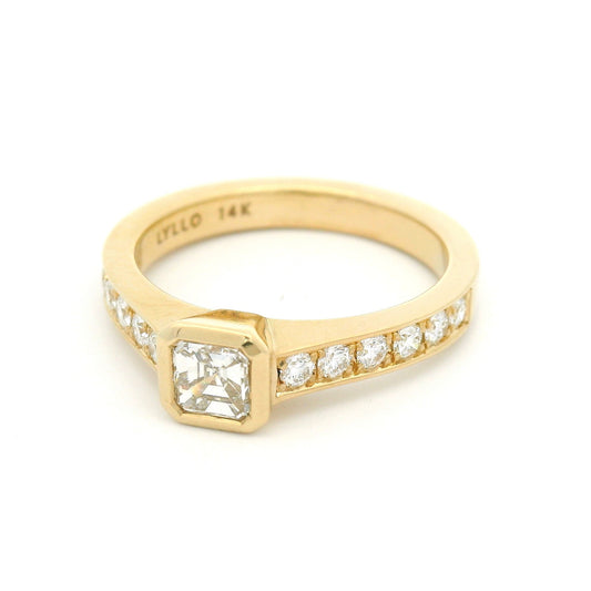 14k Yellow Engagement Ring with Natural 0.41ct Asscher-Cut Diamond and Accent Diamonds
