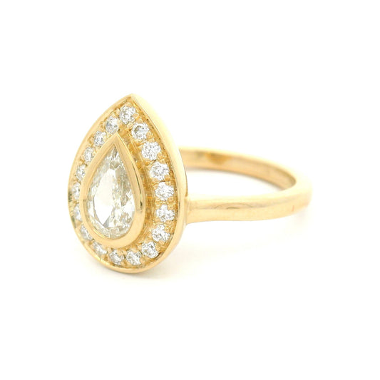 14k Yellow Engagement Ring with 0.44ct Pear-Shaped Diamond and Accent Diamond Halo