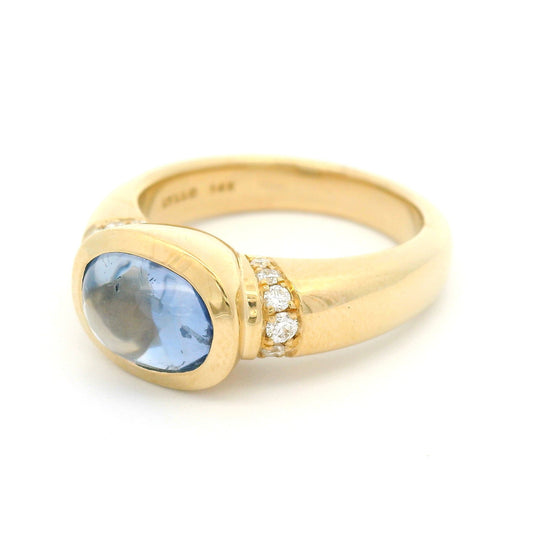 18k Yellow Bezel Set Halo Ring with 0.98ct Round Blue Sapphire and Accent Diamonds