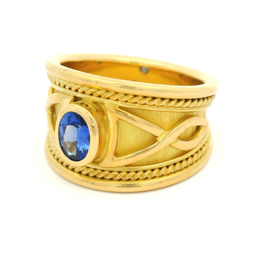 18k Yellow Engraved Ring with Natural 0.54ct Oval Blue Sapphire