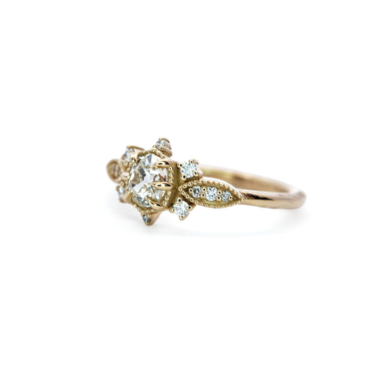 10k Yellow Engagement Ring with European-Cut and Brilliant-Cut White Diamonds